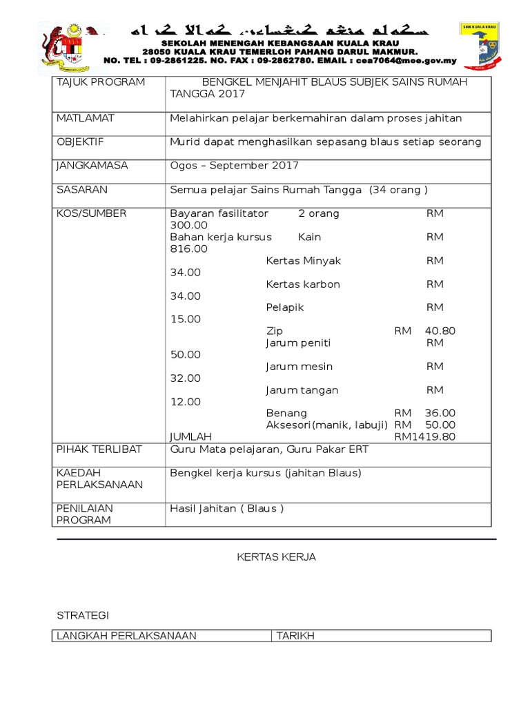 Contoh Kertas Kerja Kelas Jahitan